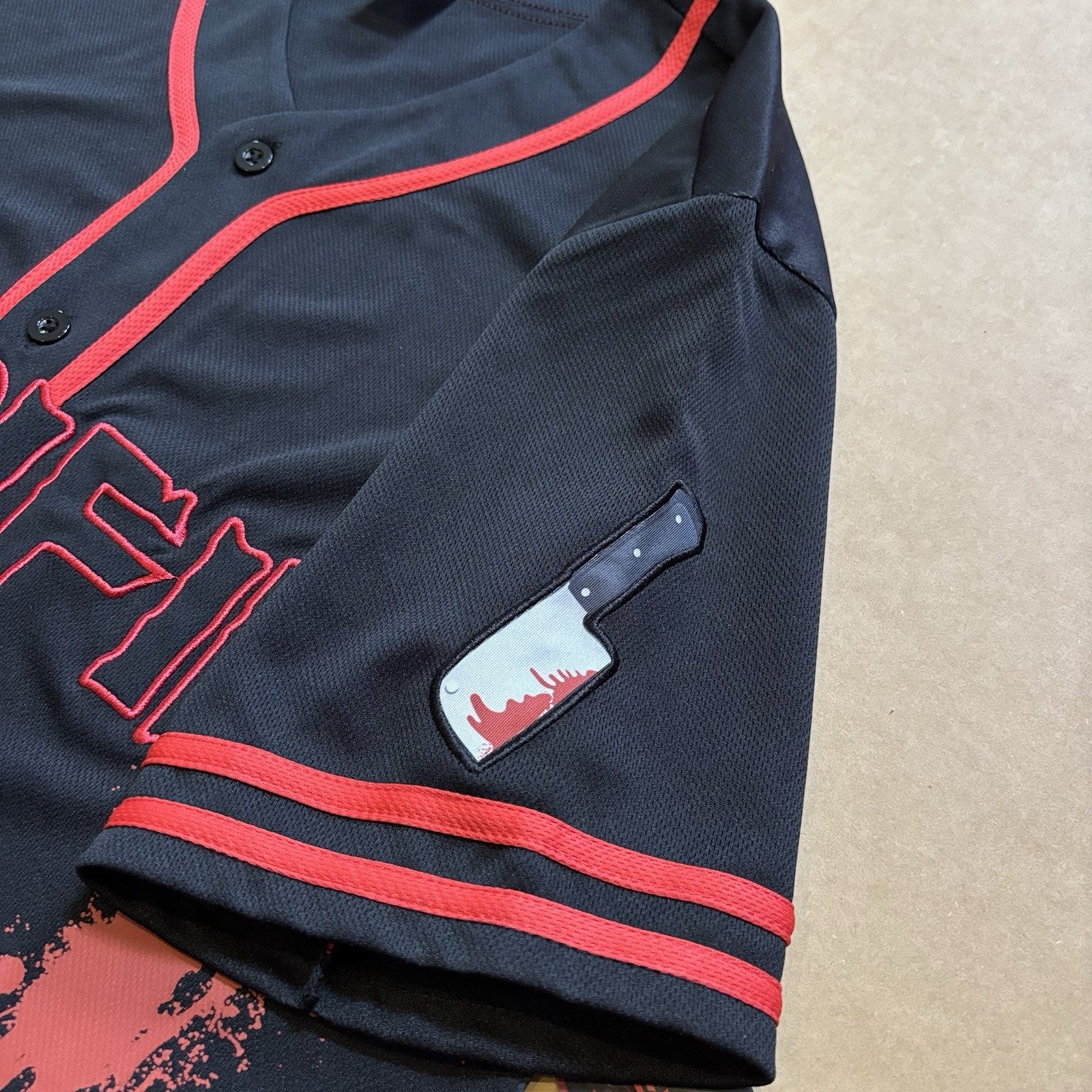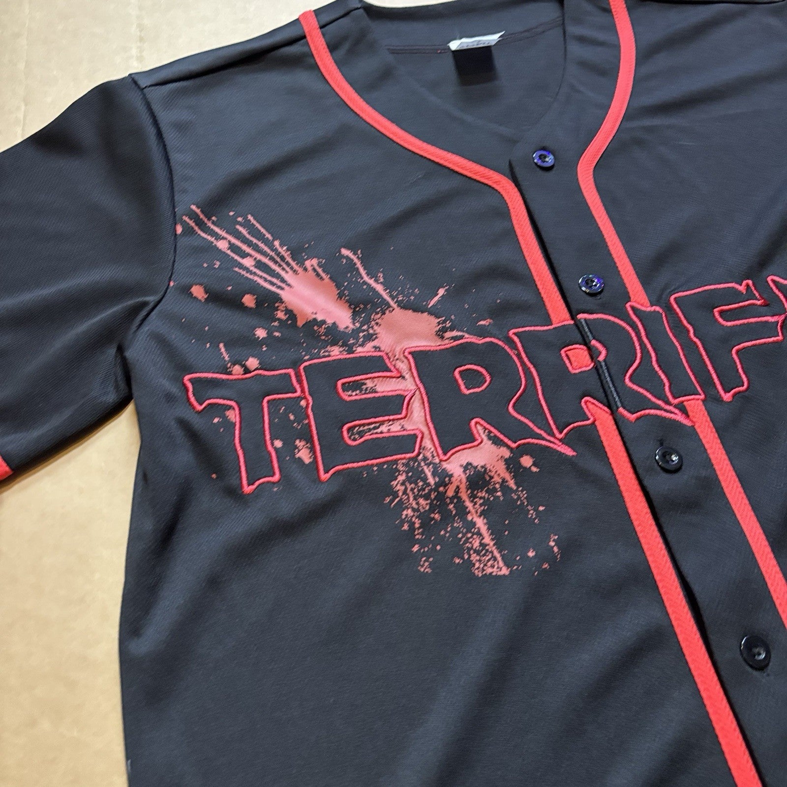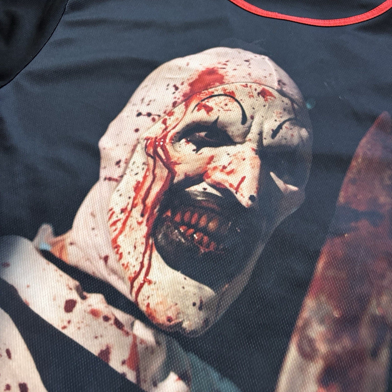 Want a jersey that blends both your sporty and spooky sides? This officially licensed Art the Clown Baseball Jersey is just what you've been looking for! This jersey features bloody decals and a spine-chilling Art the Clown graphic that's sure to thrill any Terrifier fan.