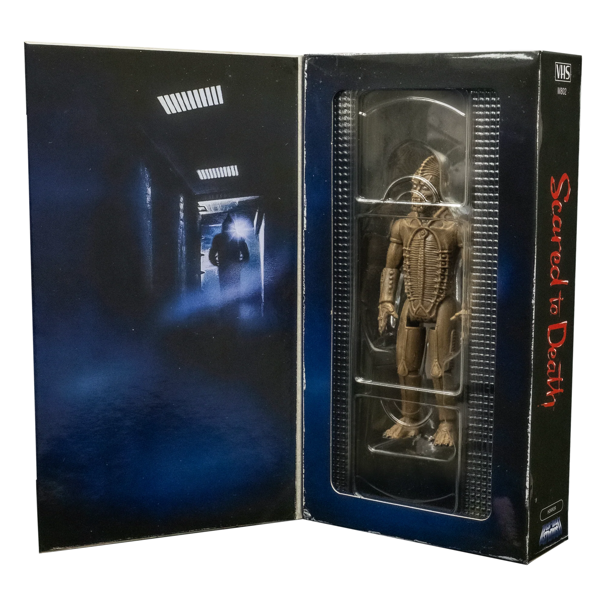 This retro-style collectible comes packaged in a VHS-inspired collector’s box with a magnetic flip front, complete with a cassette-shaped blister tray for that authentic rental store throwback feel. A must-have for fans of deep-cut horror and retro collectibles!
